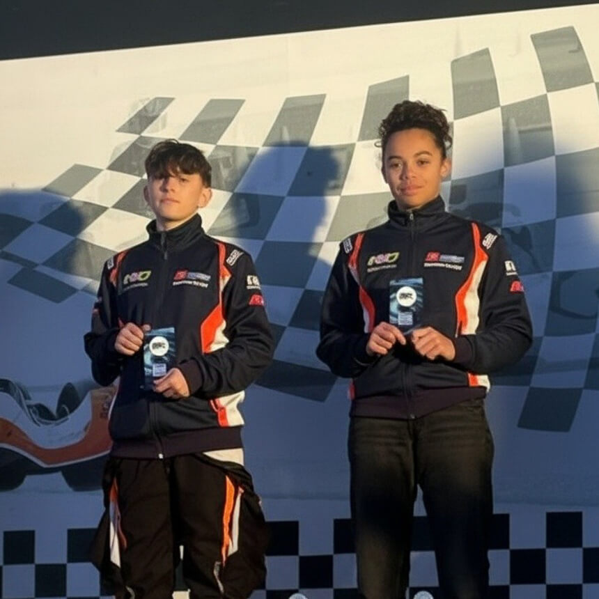 Lauréats du Volant Kartagene, Louise pour le collège Saint Georges à Salbris et Evan pour la Rookie School, ils ont intégré les rangs de Kartagene il y a plusieurs saisons. Depuis octobre, leur progression s’est accélérée : après avoir été sélectionnés lors des épreuves du volant, ils ont découvert les sensations du kart de compétition début novembre. Face à leur sérieux et à leur potentiel, l’équipe Kartagene a pris la décision audacieuse de les aligner en course dès fin novembre.